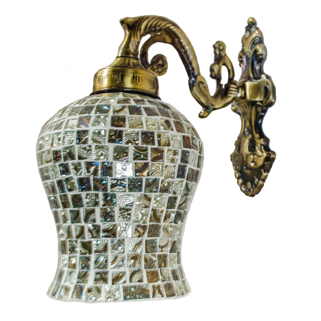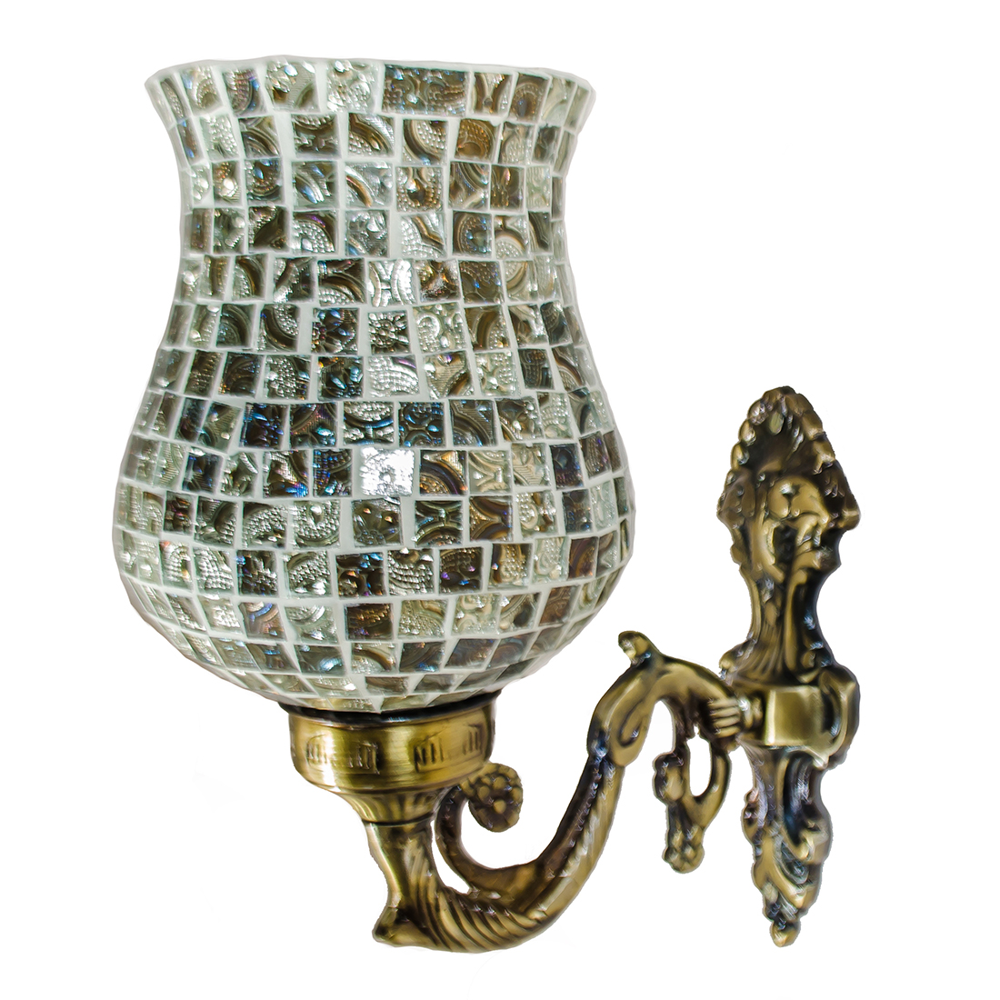 DEVBEADS Antique Silver Wall Bracket Glass Mosaic Lamp 17cm