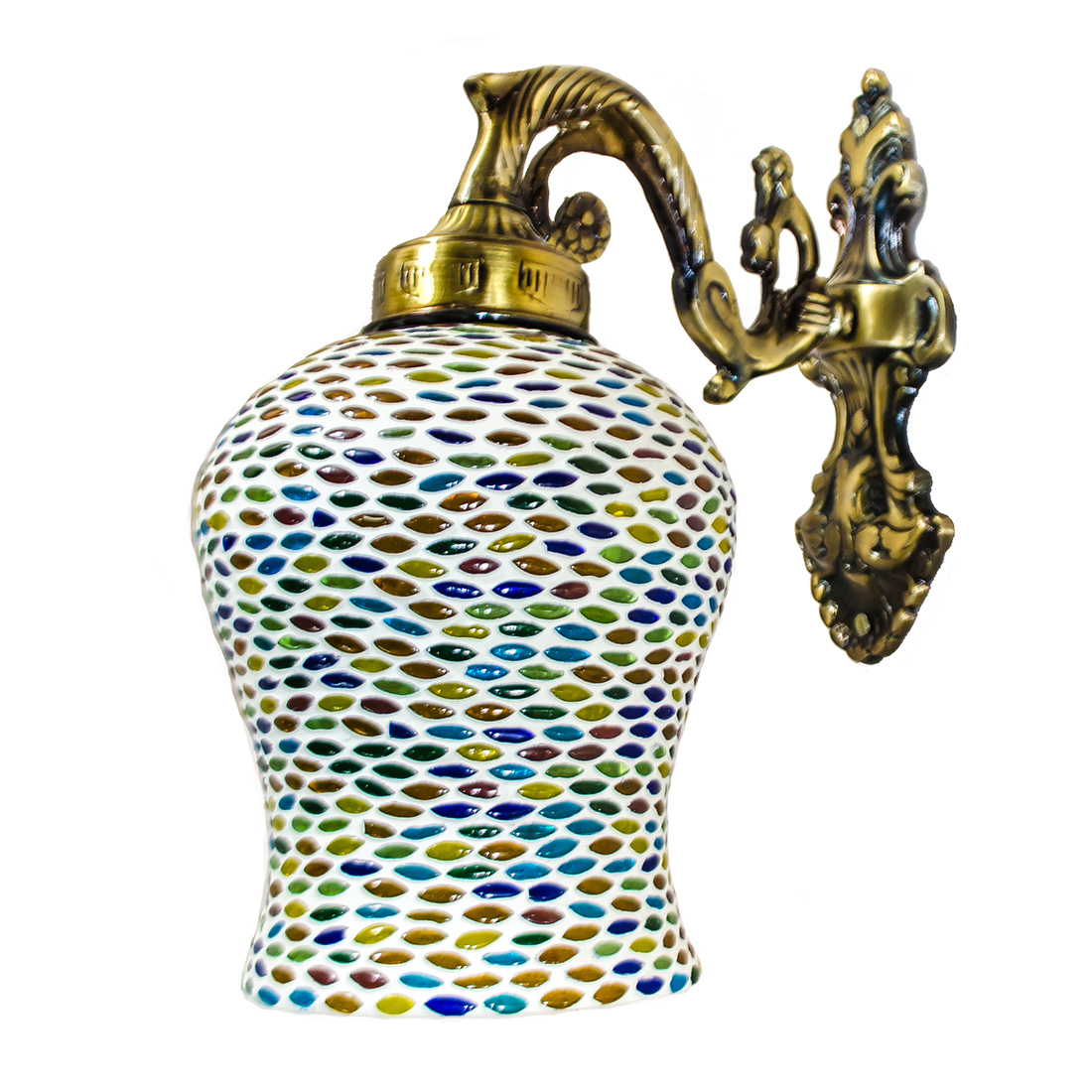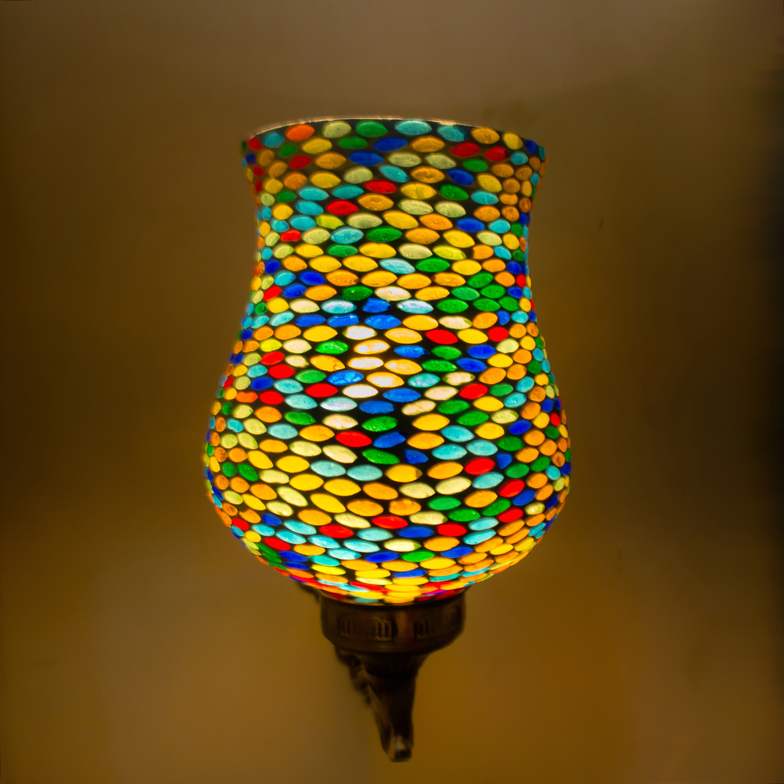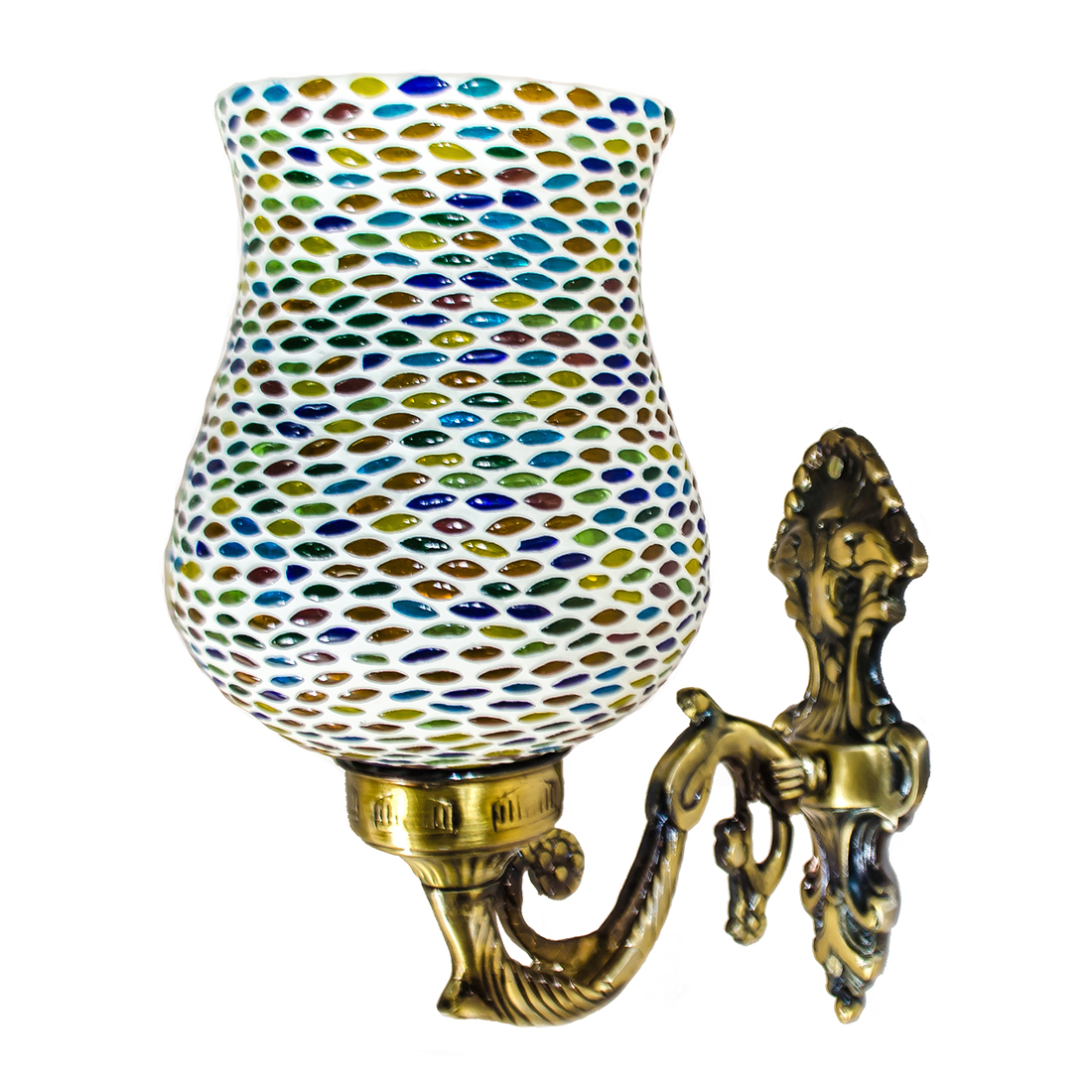 DEVBEADS Mosaic Glass Wall Sconce, Decorative Handcrafted Lamp with Multi-Coloured Design, Vintage-Style Metal Bracket