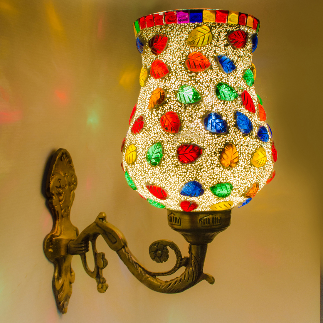 Be the first to review “DEVBEADS Multi-Color Leaf Hurricane Wall Bracket Glass Mosaic Lamp 17cm” Cancel reply