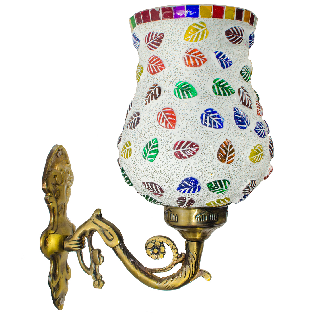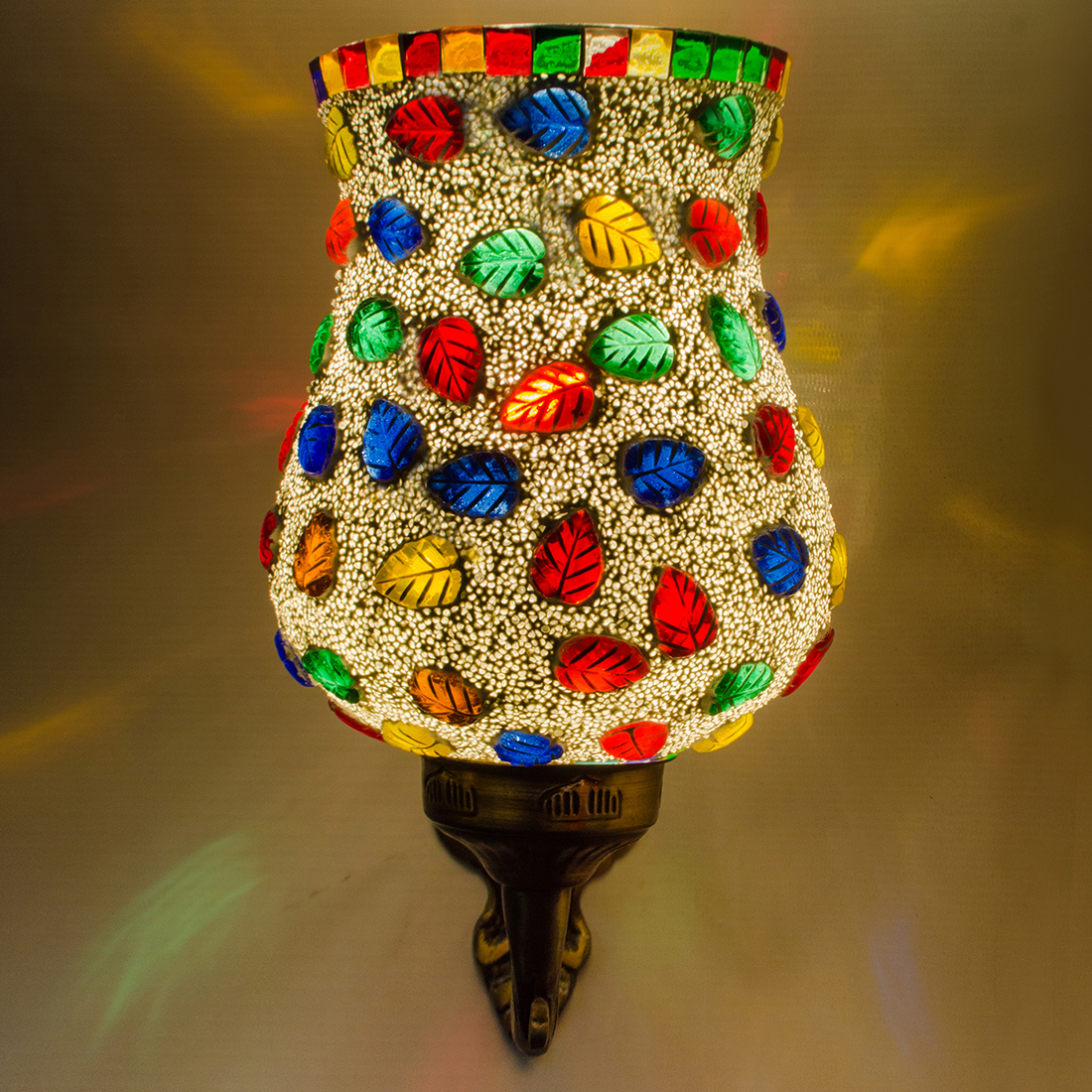 DEVBEADS Multi-Color Leaf Hurricane Wall Bracket Glass Mosaic Lamp 17cm